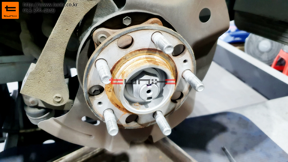 연마를 위해서 디스크 탈착후 허브방청을 먼저해주었습니다