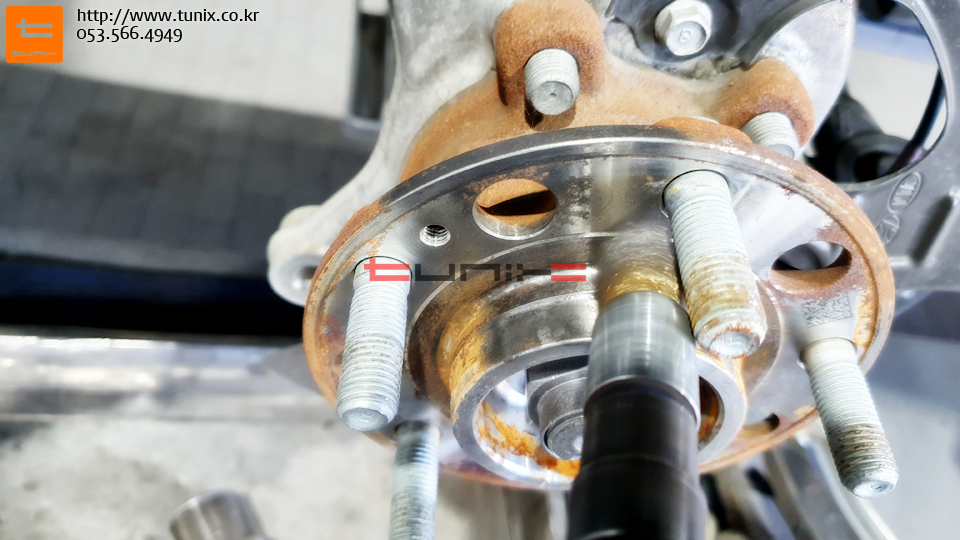 순정 브레이크를 탈착후 허브에 녹을 깨끗히 제거해줍니다