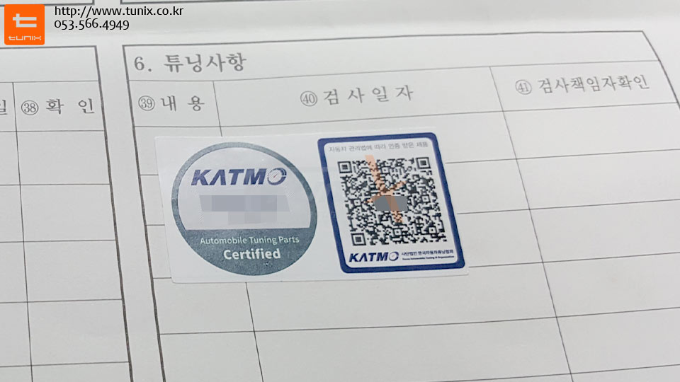 튜닝 머플러중 국내 유일 준비엘 제품만 인증을 받아 구변이 필요 없습니다