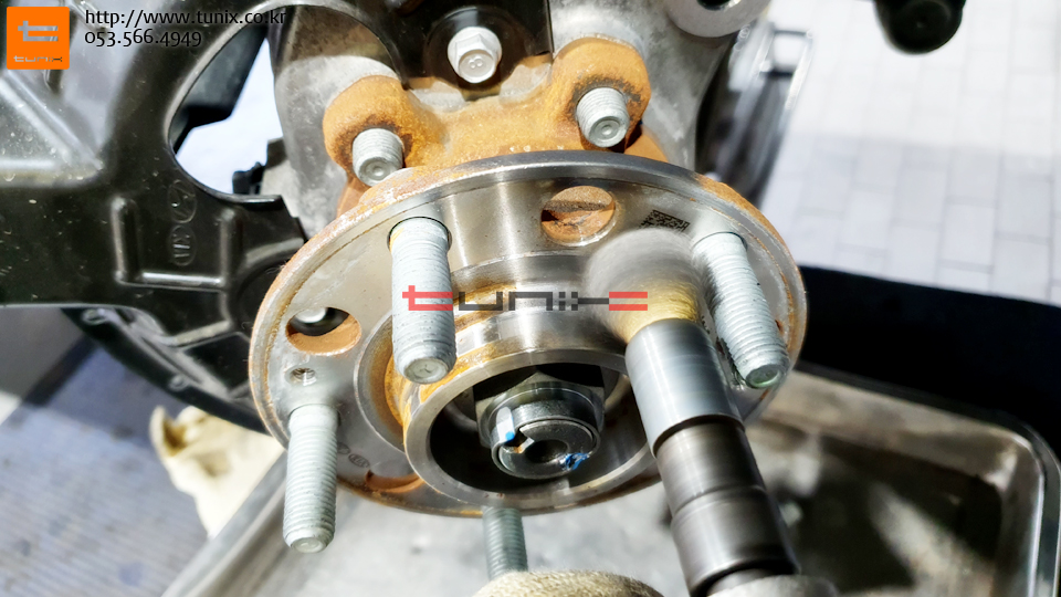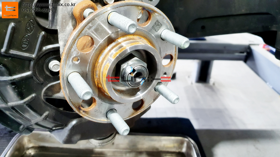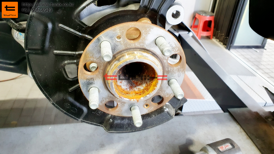 순정 브레이크를 탈착후 허브에 녹을 깨끗히 제거해줍니다