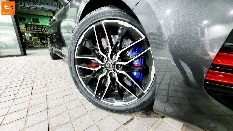 캘리퍼 색상은 커스텀 도장인 캔디블루입니다