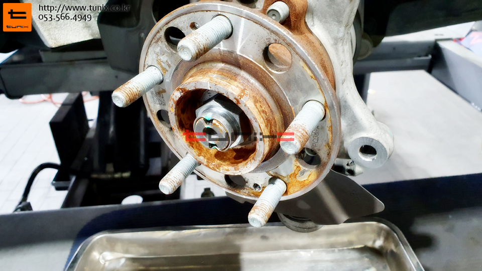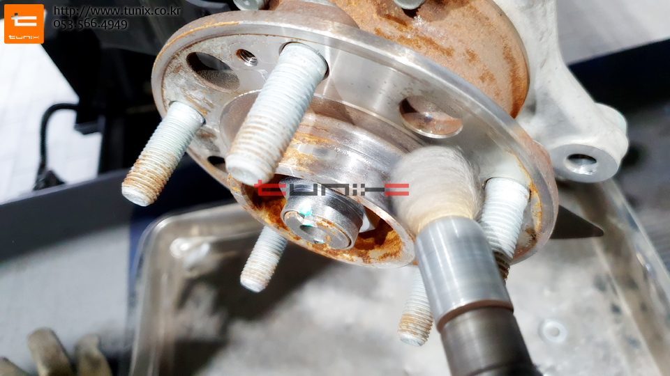 순정 브레이크를 탈착후 허브에 녹을 깨끗히 제거해줍니다