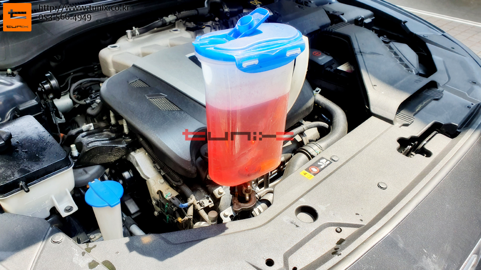 장수명인 레드계열의 부동액을 비중에 맞게 넣어줍니다