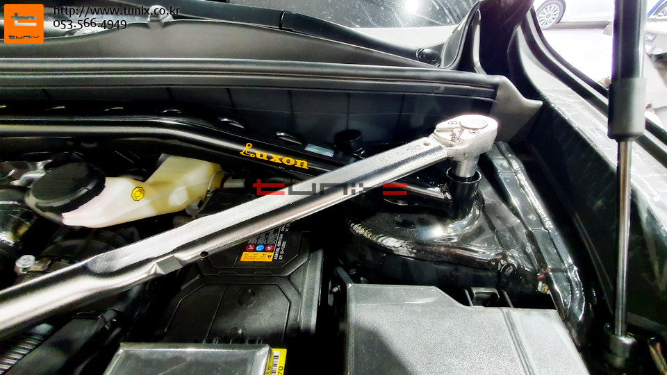 쇼바 마운트 볼트를 이용하여 룩손스트럿바를 정토크로 장착해줍니다