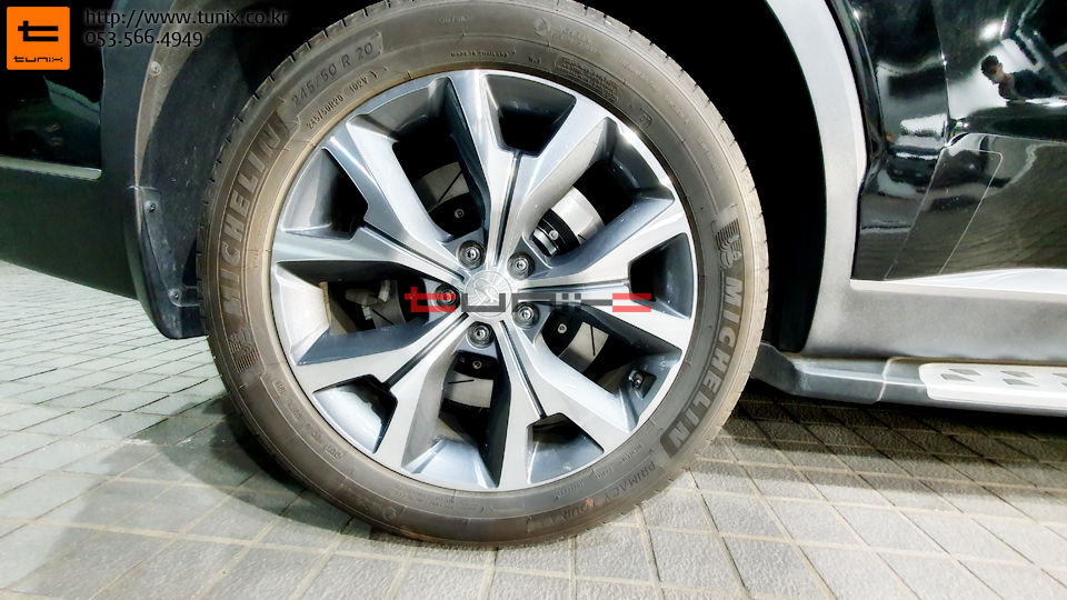 순정 20인치 휠에 간섭으로 15mm스페이스를 별도로 장착하였습니다