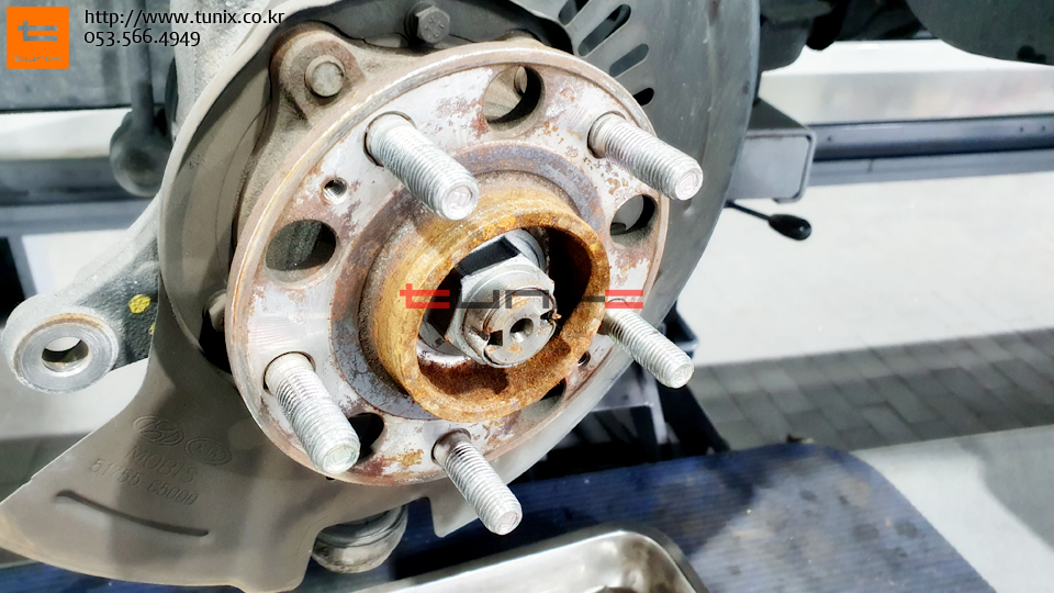 순정 브레이크를 탈착후 허브에 녹을 깨끗히 제거해줍니다