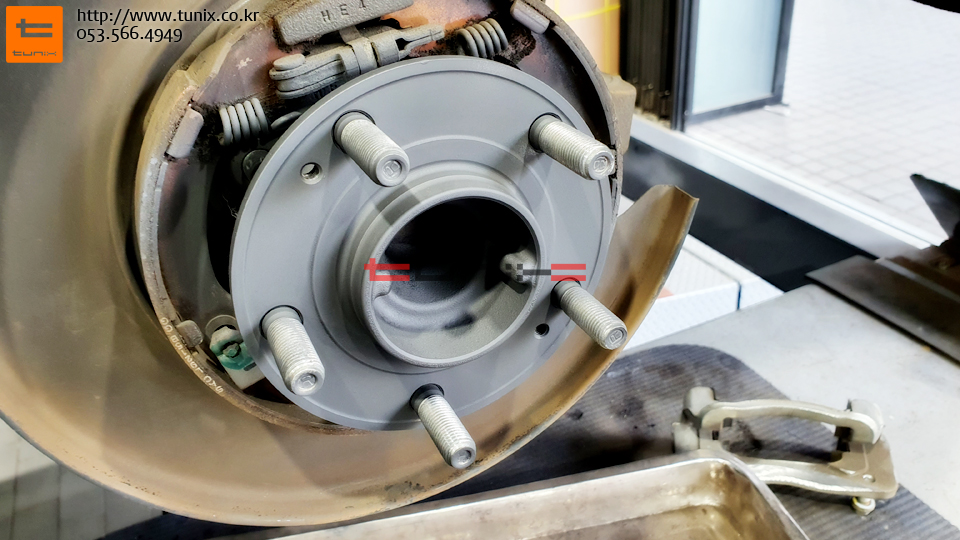꼼꼼히 리어확장 디스크와 브라켓을 장착해줍니다