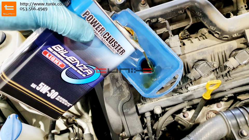 빌렌자라이트를 넣고 일차시동후 레벨링까지 해주면 오일 교환작업이 완료됩니다