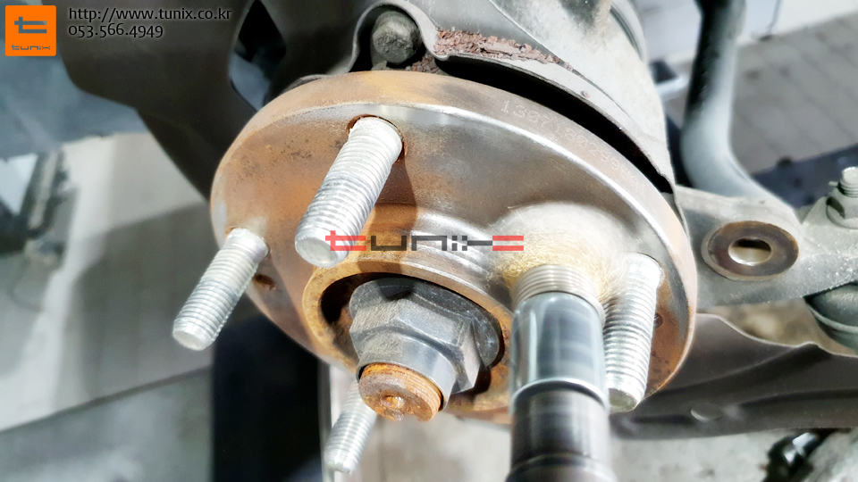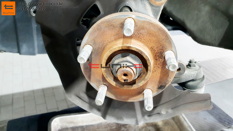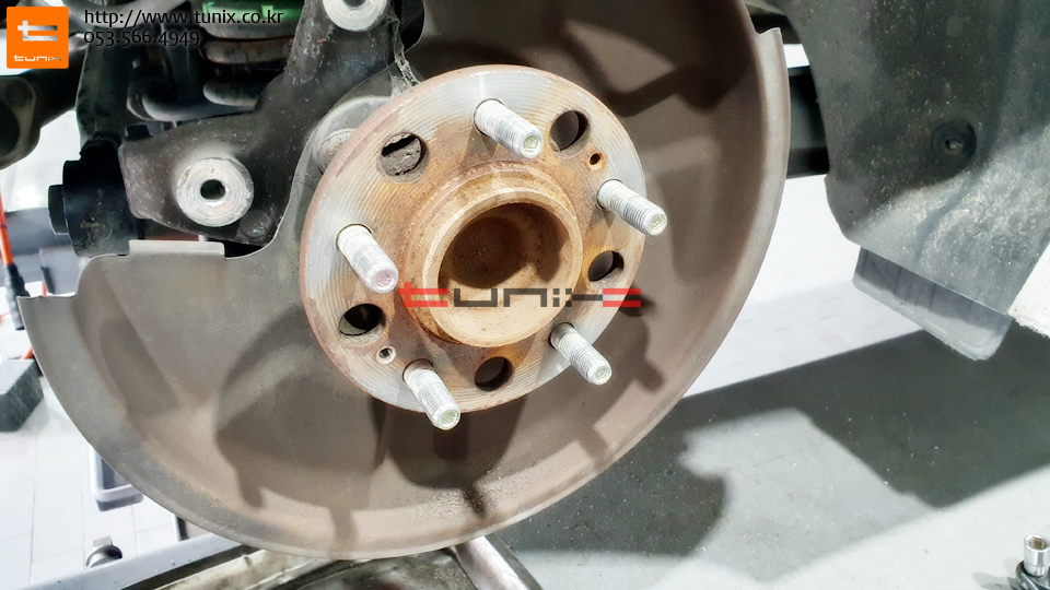 순정 브레이크를 탈착하고 허브에 녹까지 깨끗히 제거한후