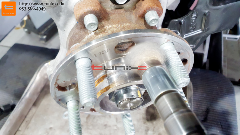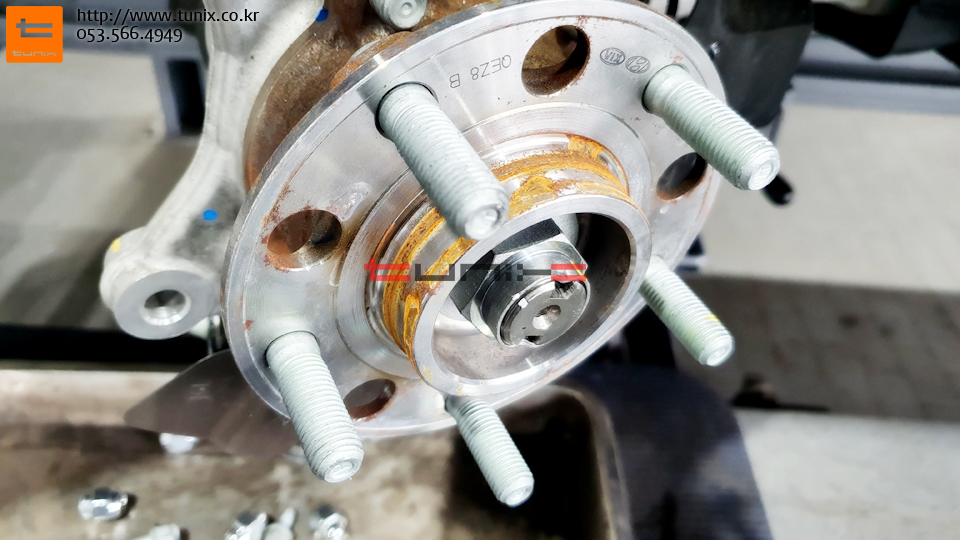 순정 브레이크를 탈착후 허브에 녹을 깨끗히 제거해줍니다