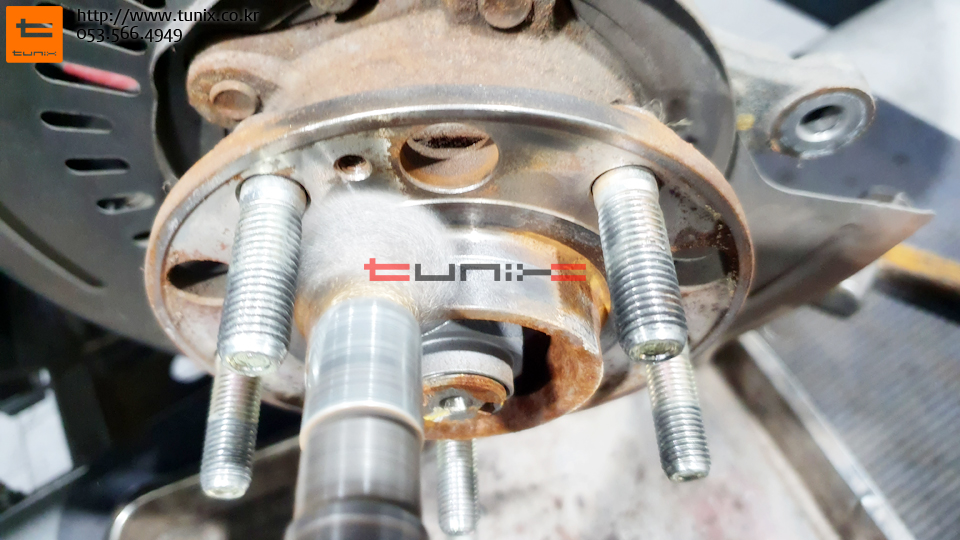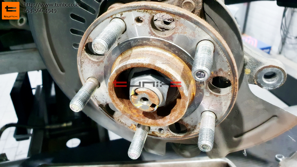 순정 브레이크를 탈착후 허브에 녹을 깨끗히 제거해줍니다