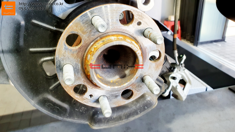 순정 브레이크를 탈착후 허브에 녹을 깨끗히 제거해줍니다