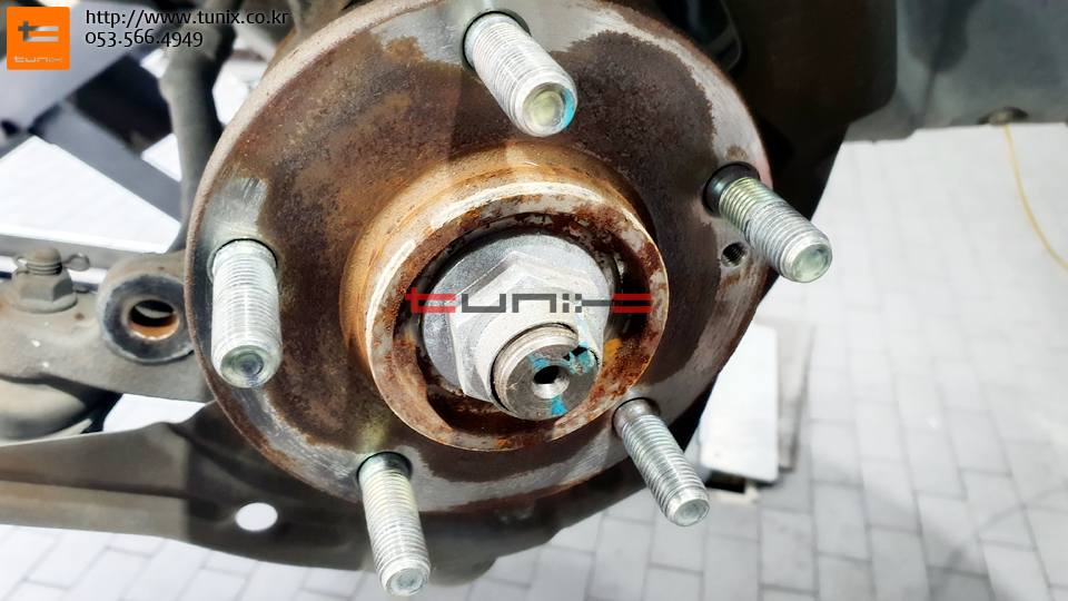순정 브레이크를 탈착후 허브에 녹을 깨끗히 제거해줍니다