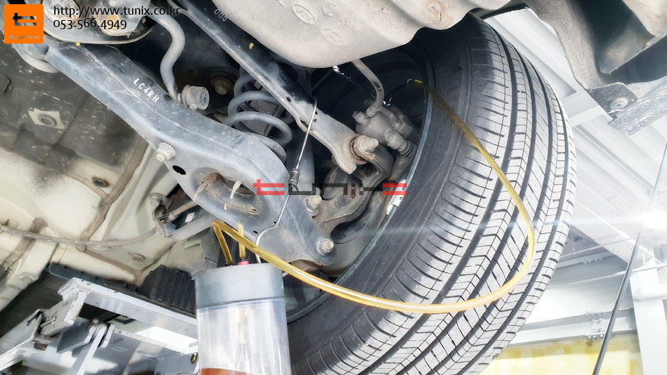 테스트 운행을 마치고 브레이크 오일 누유와 체결상태를 다시 확인해줍니다