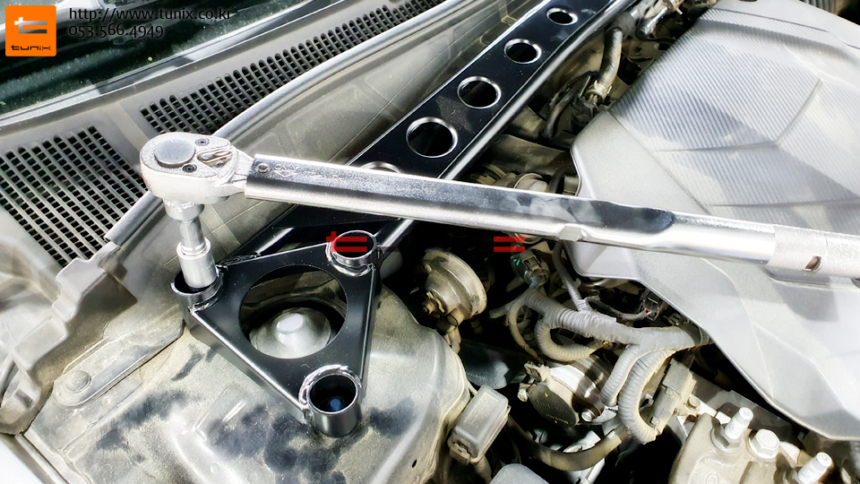 쇼바 마운트 자리에 토크렌치를 사용하고 꼼꼼히 룩손 스트럿바를 장착해줍니다