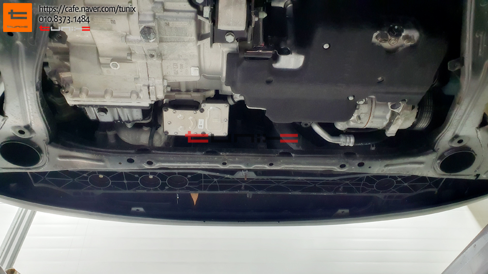 프론트 언더바 멤버라 장착을 위해서 엔진하단커버를 탈착해줍니다