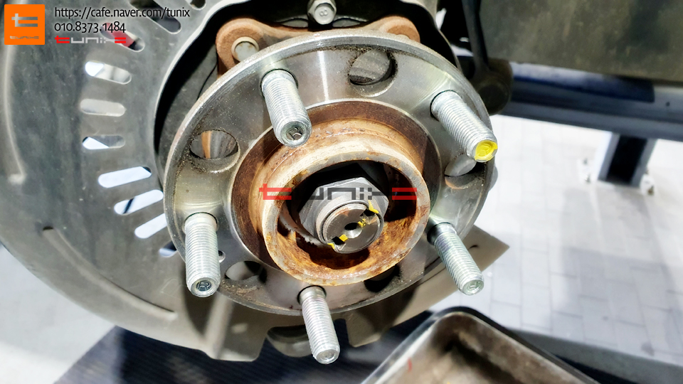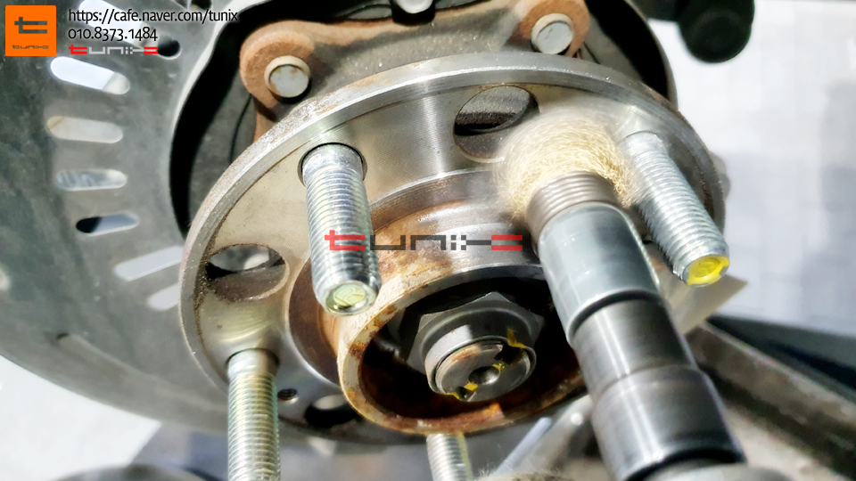 순정 브레이크를 탈착후 허브에 녹을 깨끗히 제거해줍니다