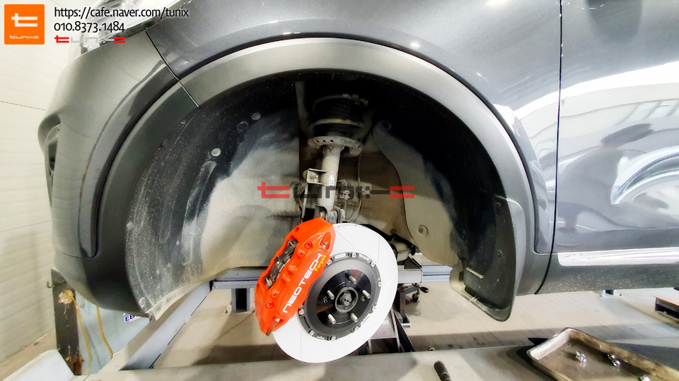 브레이크 튜닝을 위해서 방문하셨고 브레이크는 국내산중 가장 인기좋은 네오테크NF4p 380mm 경량디스크
