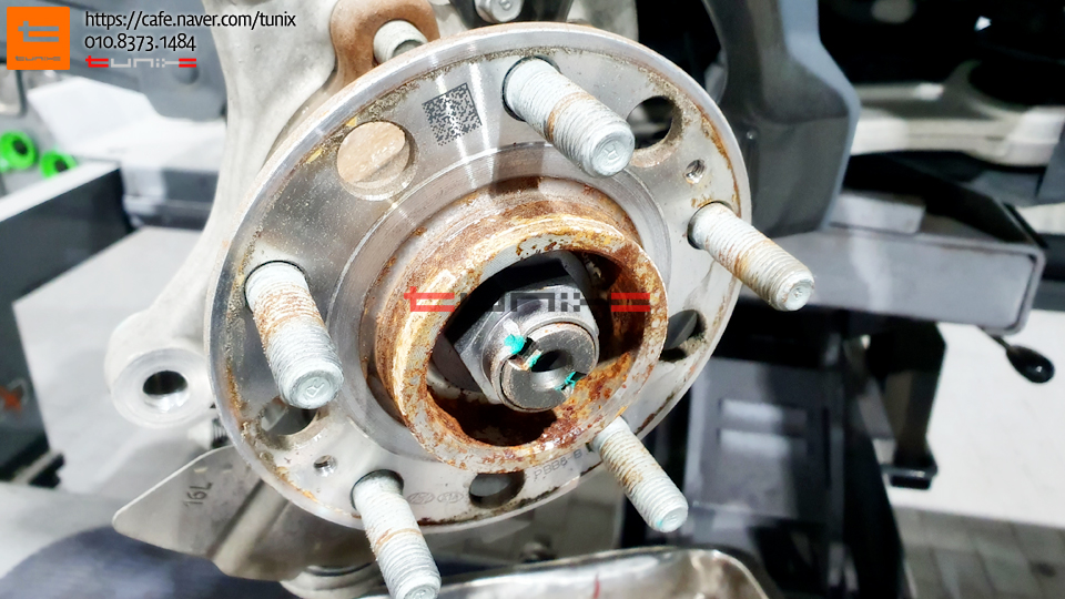 순정 브레이크를 탈착후 허브에 녹을 깨끗히 제거해줍니다