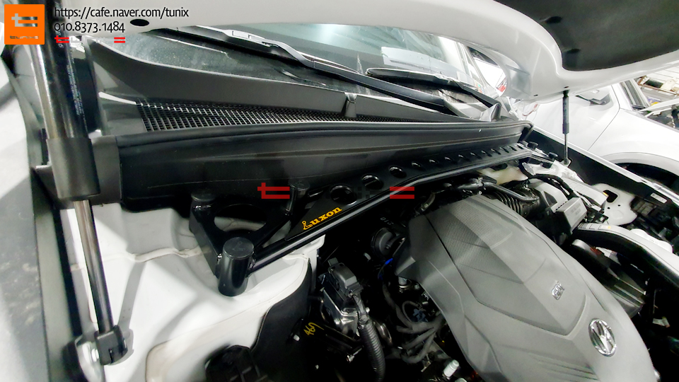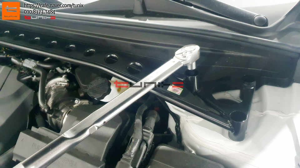 엔진룸에 토크렌치를 사용하여 꼼꼼히 스트럿바를 장착해줍니다