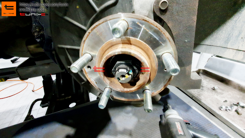 브레이크를 탈착후 허브에 녹을 깨끗히 제거해줍니다