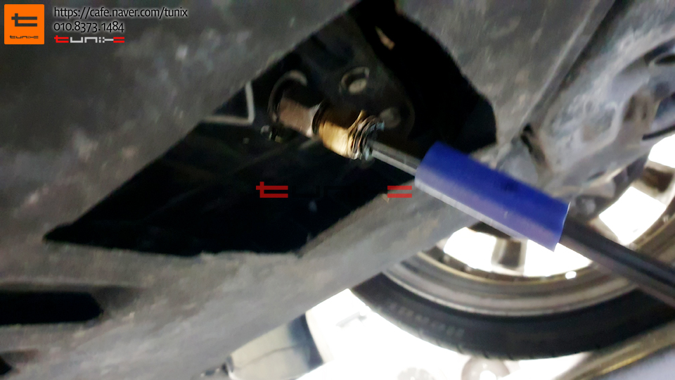 기존오일을 모두빼고 남아 있는 잔유는 전용드레인기를 이용하여 깔끔하게 제거해줍니다
