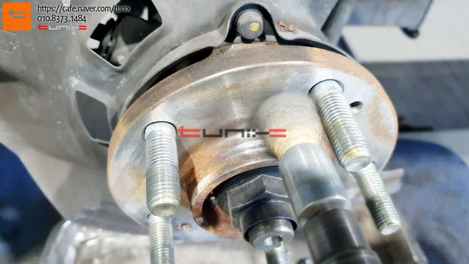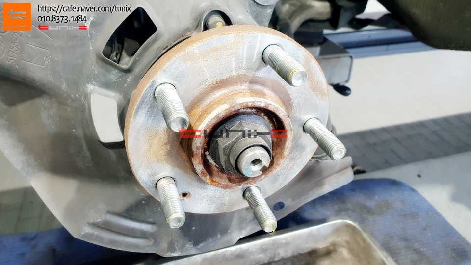 순정 브레이크를 탈착후 허브에 녹을 깨끗히 제거해줍니다