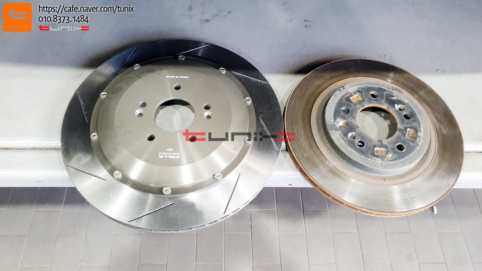 탈착한 순정과 370mm펠라확장디스크 비교사진입니다