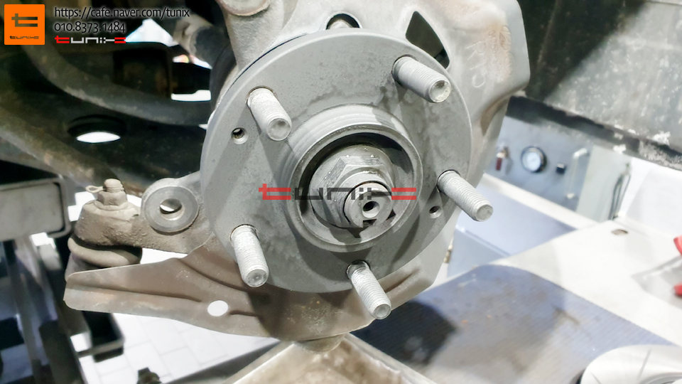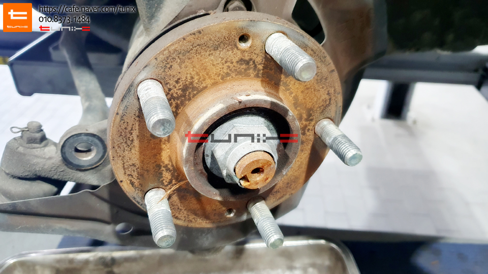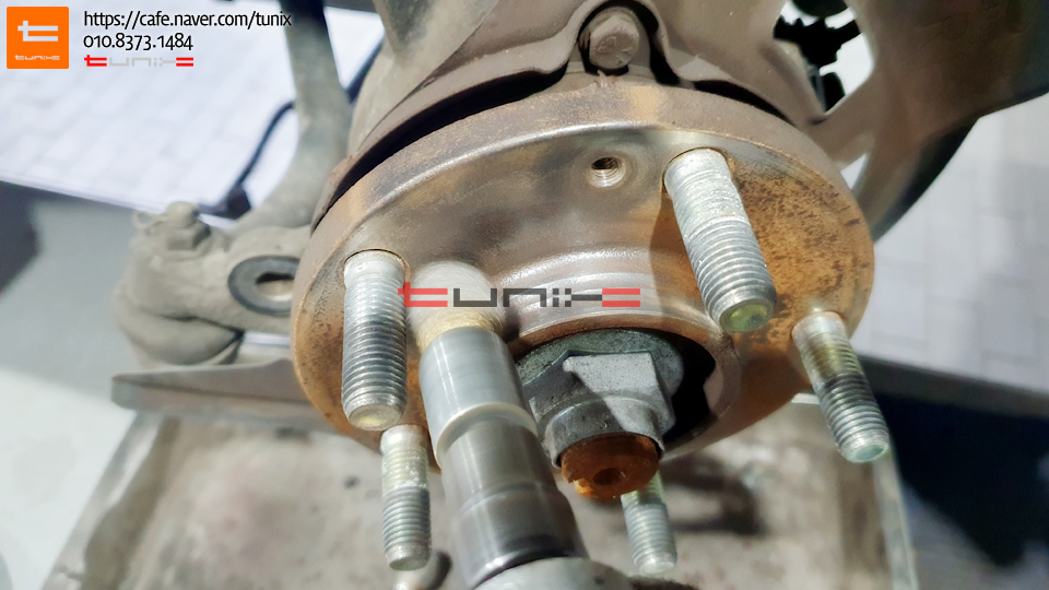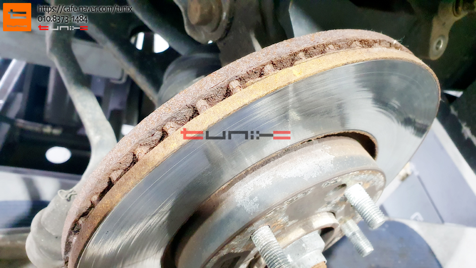 순정 브레이크를 탈착후 허브에 녹을 깨끗히 제거해줍니다