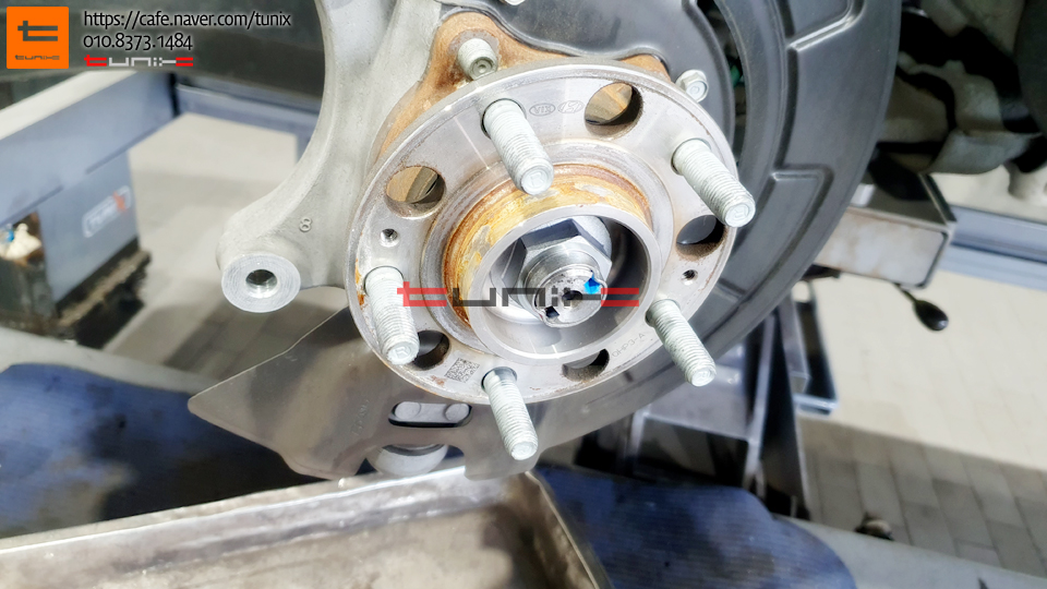 순정 브레이크를 탈착후 허브에 녹을 깨끗히 제거해줍니다