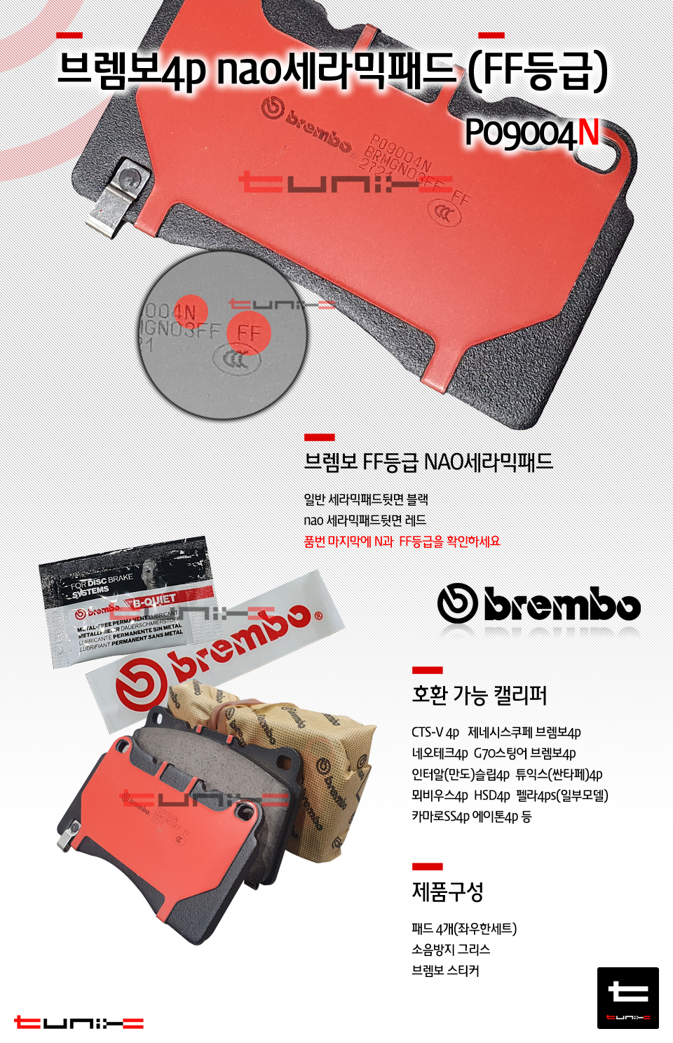 브렘보4P NAO세라믹패드 CTS-V 네오테크 뫼비우스 인터알 제네시스쿠페 p09004N : 튜닉스-TUNIX