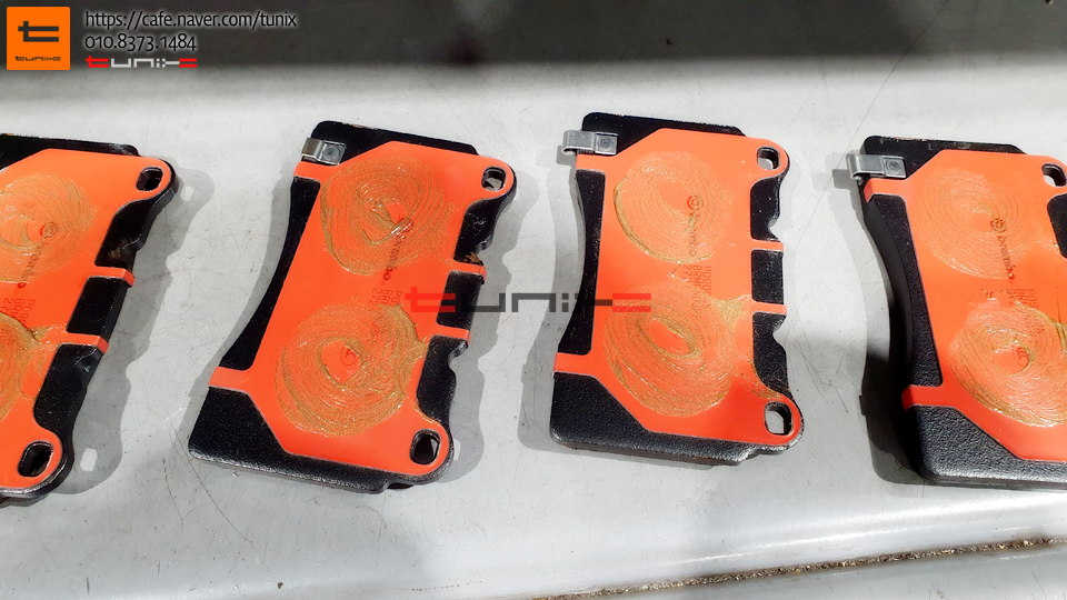 소음과 리턴에 도움이되는 전용그리스를 도포하여 패드를 장착해줍니다