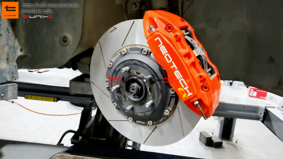 대용량 튜닝디스크라 일반카세터가 아닌 브레이크 전문샵인 튜닉스로 바로 오세요