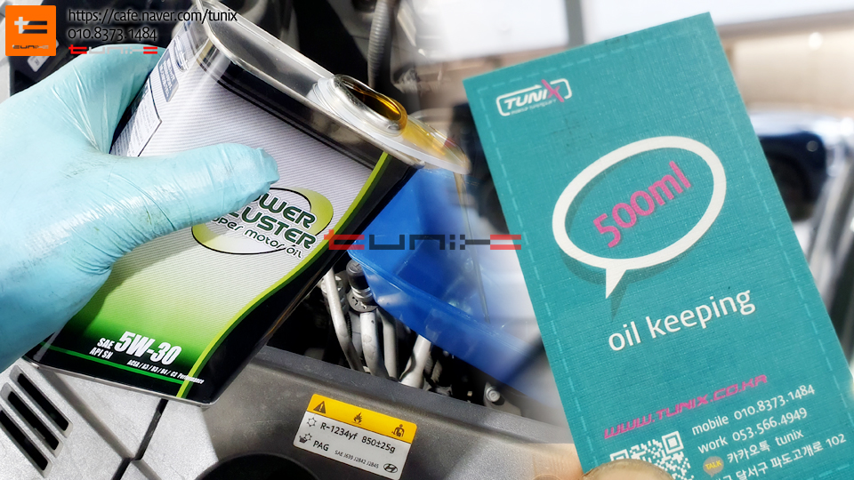 오일교환 잔유제거까지 깔끔하게 잘하는 튜닉스로 방문하였습니다
