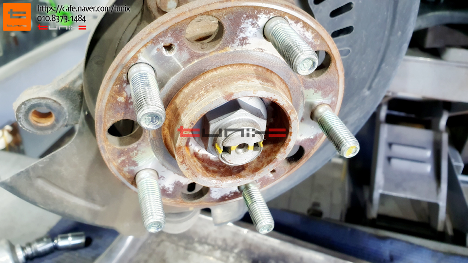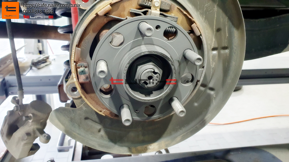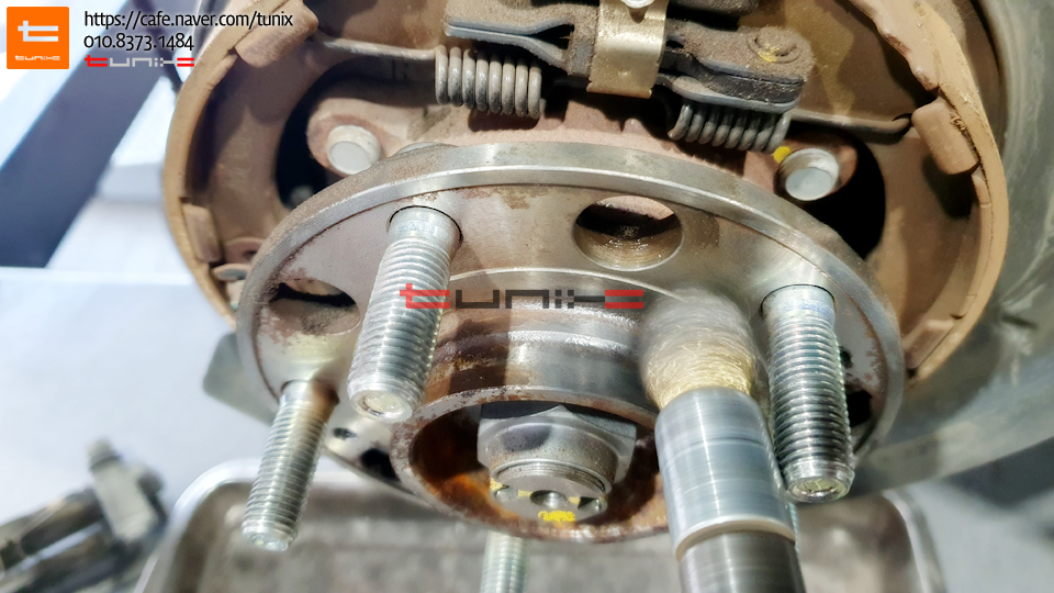 순정 브레이크를 탈착후 허브에 녹을 깨끗히 제거해줍니다