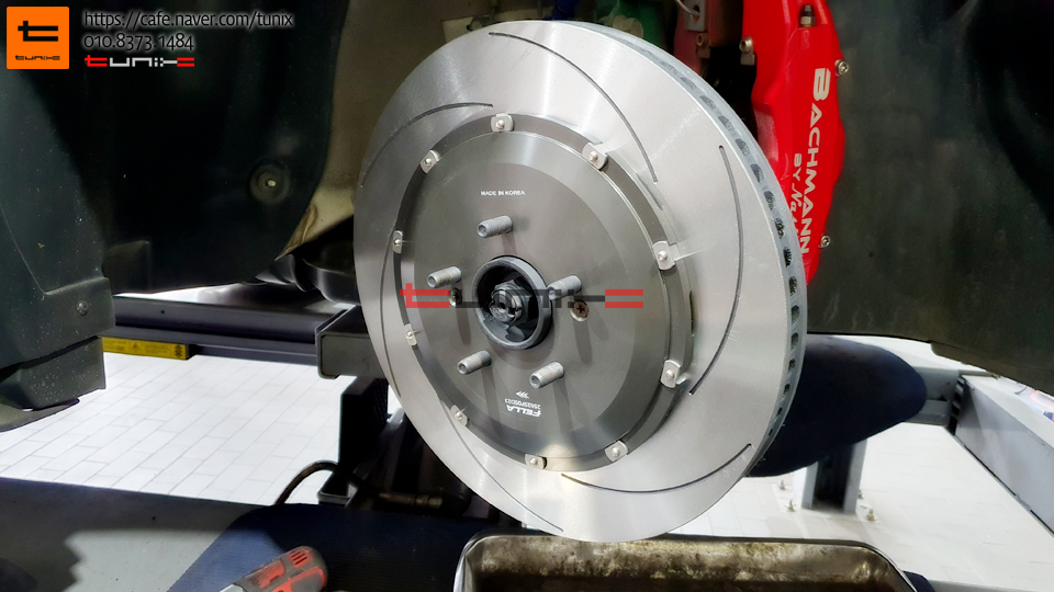380mm 34T 나신전용 세미플로팅 디스크를 장착해줍니다