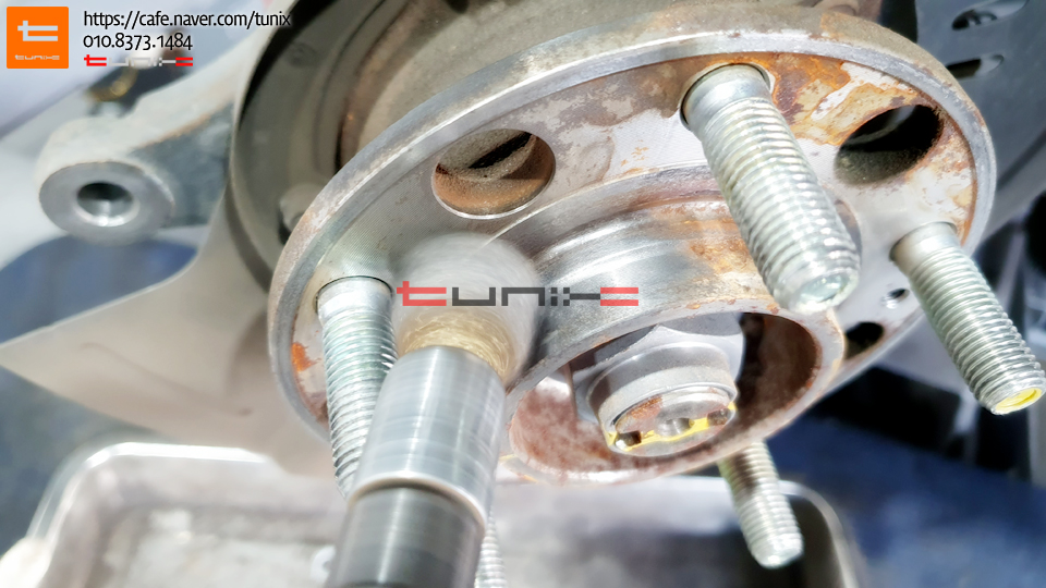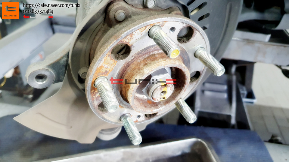순정 브레이크를 탈착후 허브에 녹을 깨끗히 제거해줍니다