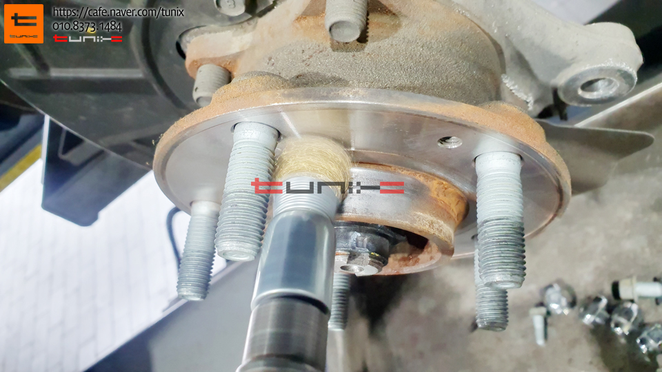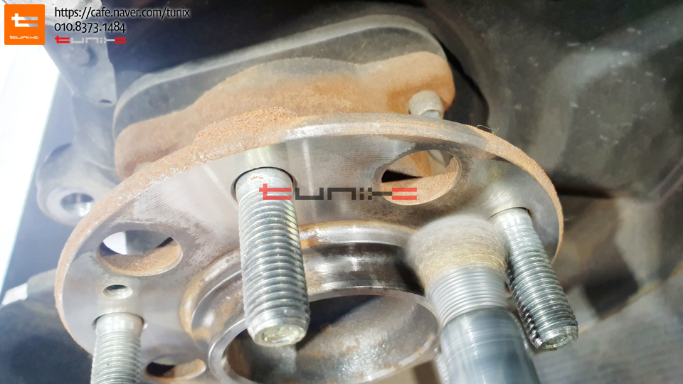 순정 브레이크를 탈착후 허브에 녹을 깨끗히 제거해줍니다