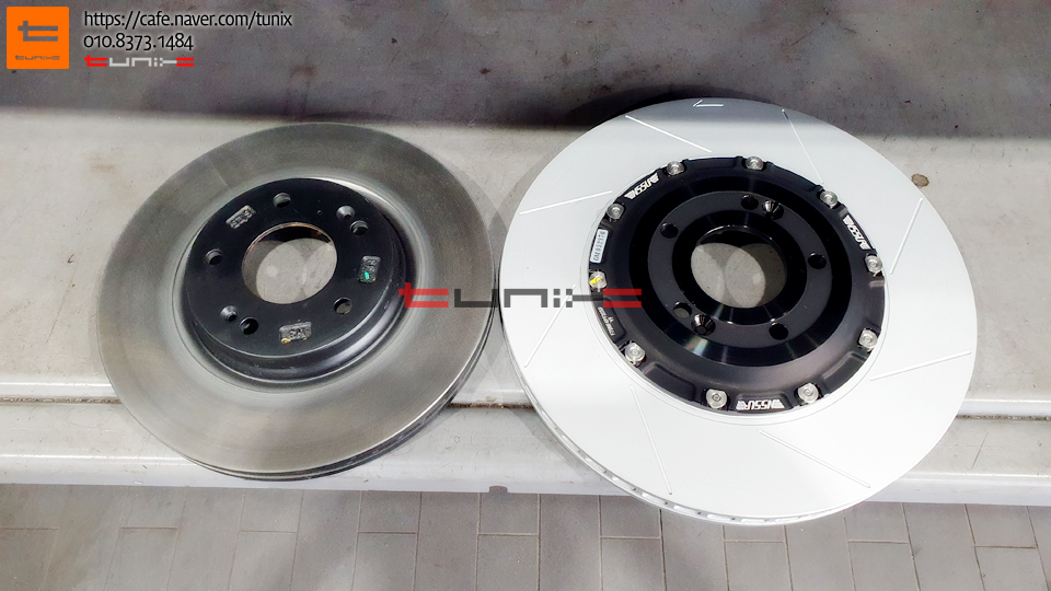 305mm 순정디스크와 355mm 네오테크 경량디스크 비교사진입니다