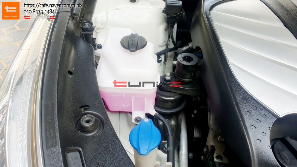 마지막으로 리저버탱기에 핑크색 부동액을 보충해주고 마무리하였습니다