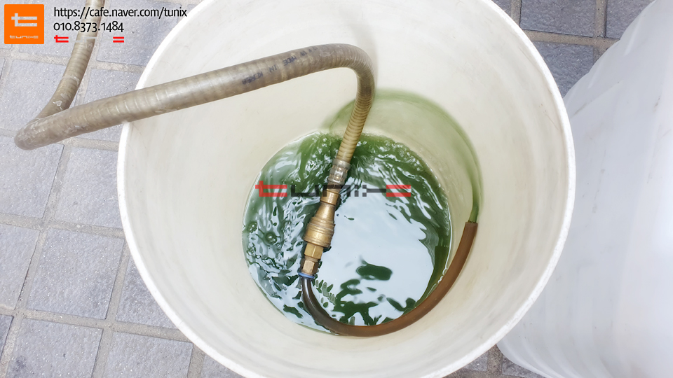 4차 순환까지 마치니 기존에 녹색 부동액이 깨끗하게 세척되었습니다