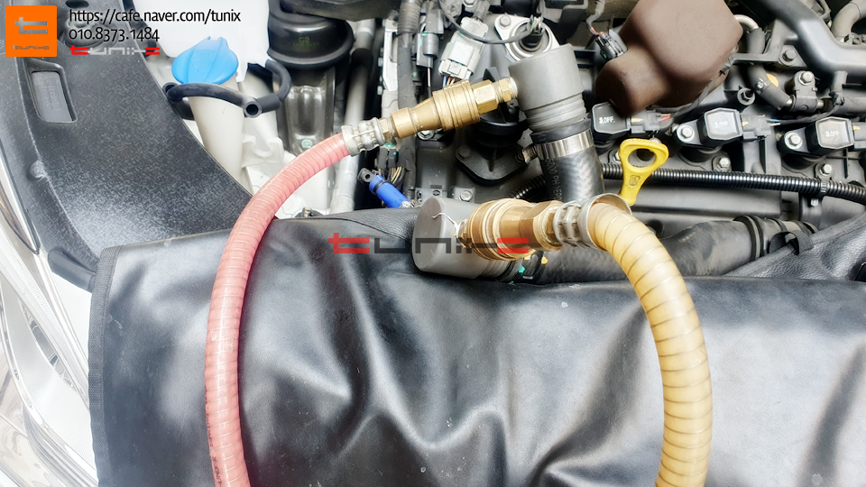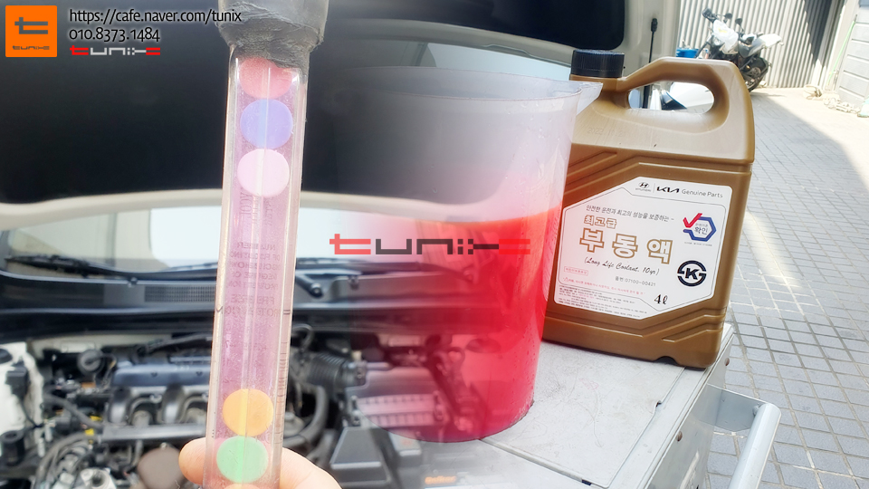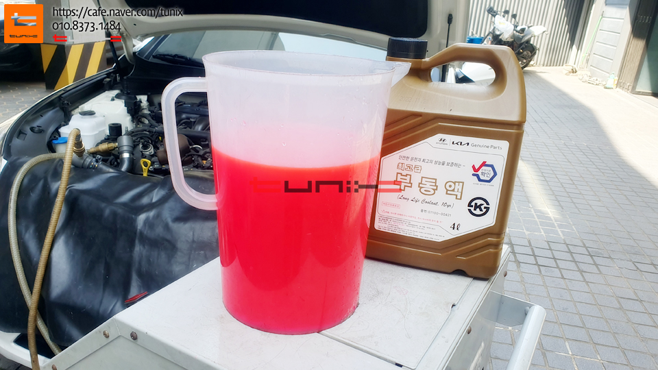 녹색 부동액에서 순정 핑크색 부동액으로 교환을 위해서