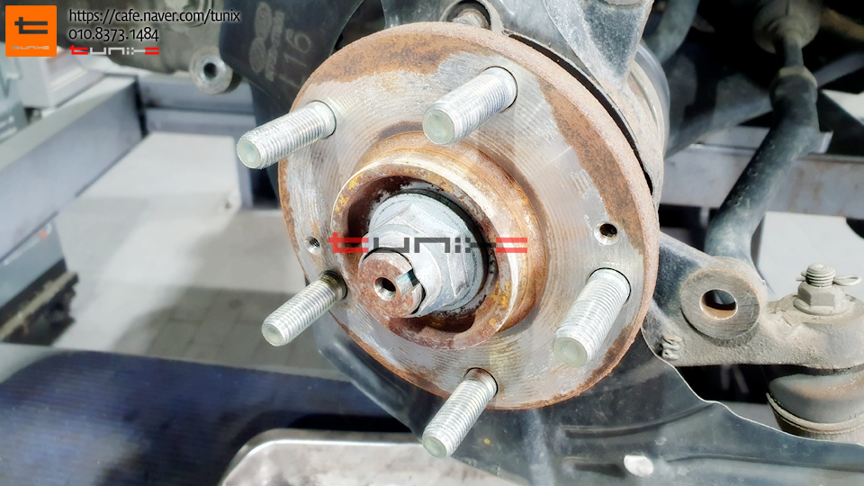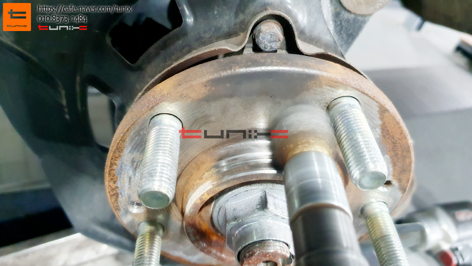 순정 브레이크를 탈착후 허브에 녹을 깨끗히 제거해줍니다