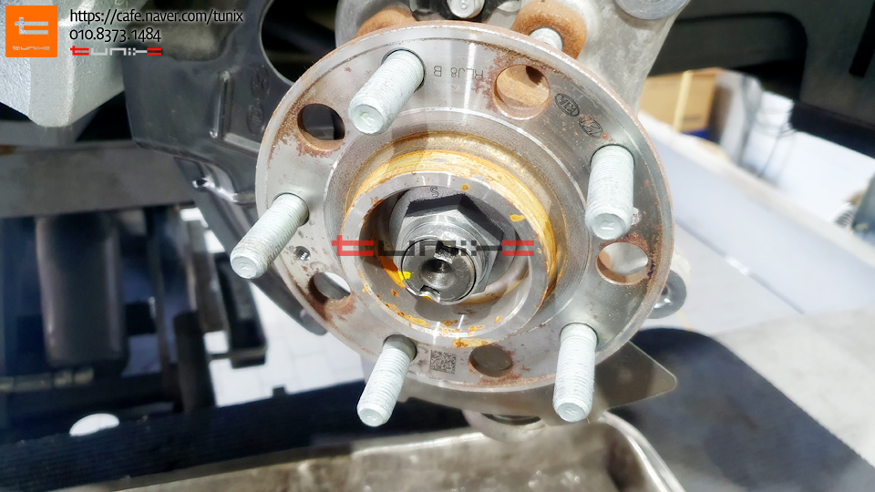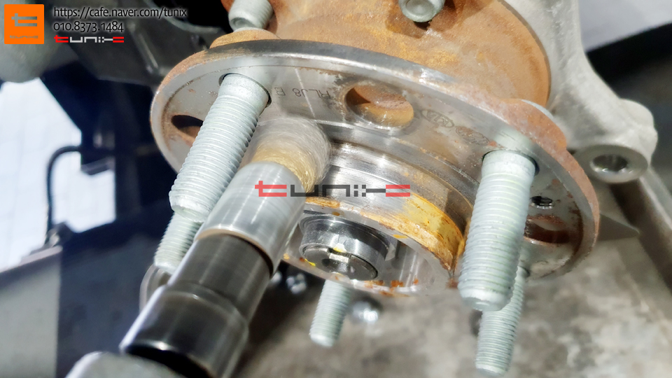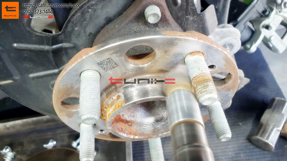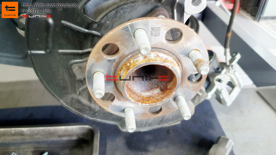 순정 브레이크를 탈착후 허브에 녹을 깨끗히 제거해줍니다