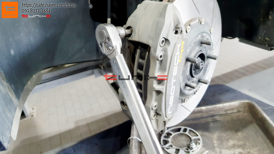 볼트본드와 토크렌치를 사용하고 캘리퍼를 재장착해줍니다