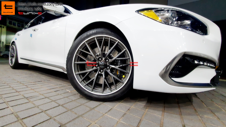그랜저ig 차량이며 휠은 제네시시DH스포츠 19인치가 장착되어있는 상태입니다