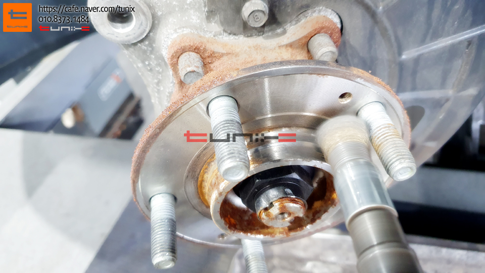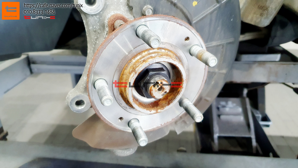 순정 브레이크를 탈착후 허브에 녹을 깨끗히 제거해줍니다