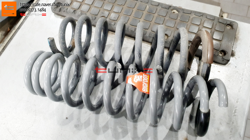 탈착한 순정스프링과 빅풋업스프링 비교사진입니다