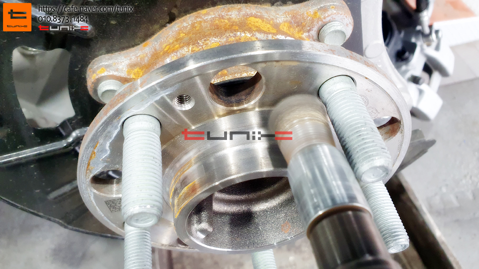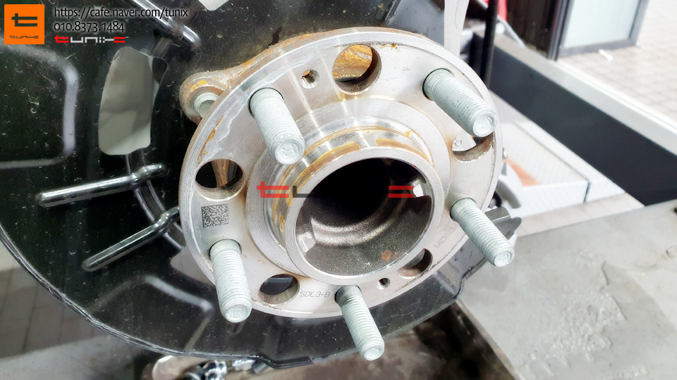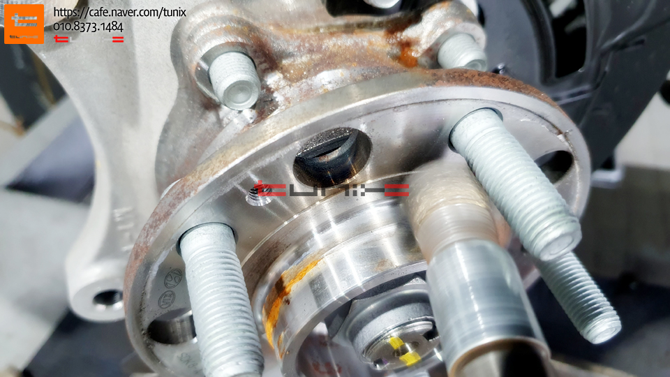 순정 브레이크를 탈착후 허브에 녹을 깨끗히 제거해줍니다