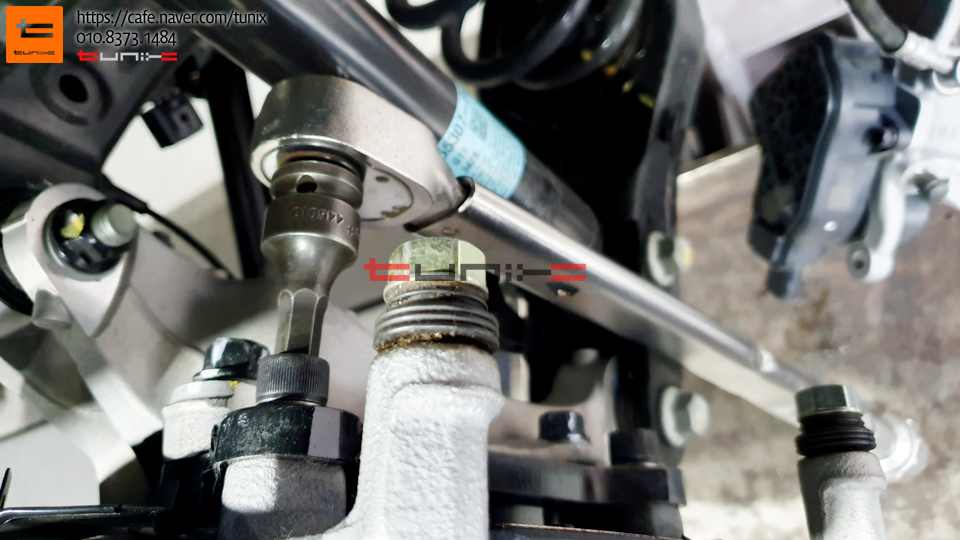 테스트 운행을 마치고 브레이크 오일 누유와 체결상태를 다시 확인해줍니다